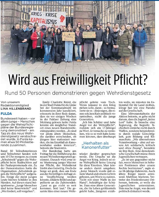 15.11.2025 Das Thema Wehrpflicht ist in den Schulen angekommen, siehe Schulstreik