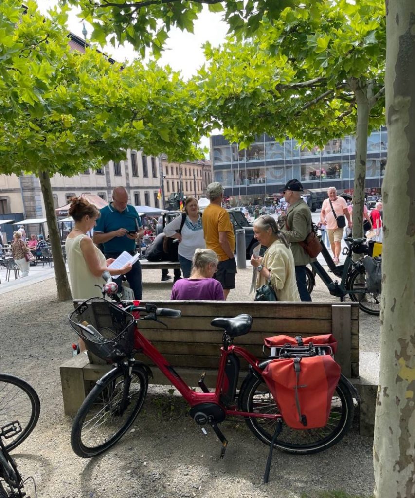 Nach dem Verlesen des Textes von Iris Berndt verteilten wir, im Rahmen einer bundesweiten Verteilaktion, Plakate und Postkarten: