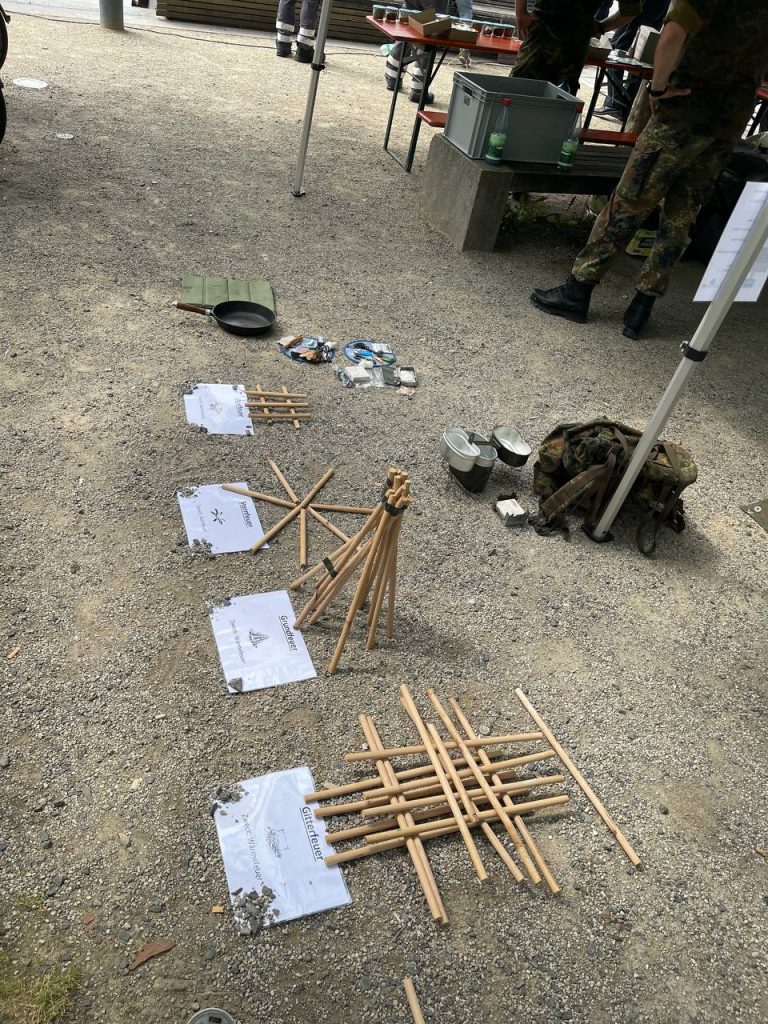Samstagnachmittag: der Universitätsplatz ist vollgestellt mit Ständen der Reservisten, mit Militärfahrzeugen, es gibt Überlebenstipps zum Feuermachen und Wasserfiltern. „Bundeswehr zum Anfassen“ soll an diesem „Feiertag“, dem Tag der Veteranen möglich sein. Zwischen diesem Trubel geht ein Mann hin und her und trägt ein Schild vor sich her, auf dem steht: Kein Sterben für die westliche Wertegemeinschaft“ Ich spreche ihn an und erkenne nun, dass er mehrere Schilder bei sich trägt, die er abwechselnd zum Einsatz bringt. „Wasser für Gaza“ steht bspw. auf einem anderen. In der Hand hält er das Grundgesetz: „Das habe ich hier geschenkt bekommen.“ Er schlägt es auf, lacht und meint, da ist ja gerade die richtige Stelle. Er liest mir die betreffenden Zeilen vor, in denen vom Verbot, „die Führung eines Angriffskrieges vorzubereiten“, die Rede ist.