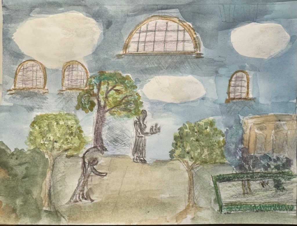 Am 31.Oktober um 12:00 Uhr fand die letzte Lesung der Reihe „Besondere Texte an besonderen Orten“ statt, diesmal im Domdechaneigarten in Fulda. Ich erzählte dort die Geschichte vom Wundergarten, ein Märchen aus Kasachstan. Es handelt davon, wie der Einzelne mit Glück und Segen beschenkt wird, wenn er an seine Mitmenschen und Mitgeschöpfe denkt und sich die daraus resultierende Haltung in all seinem Handeln, seinem Sein, ausdrückt.