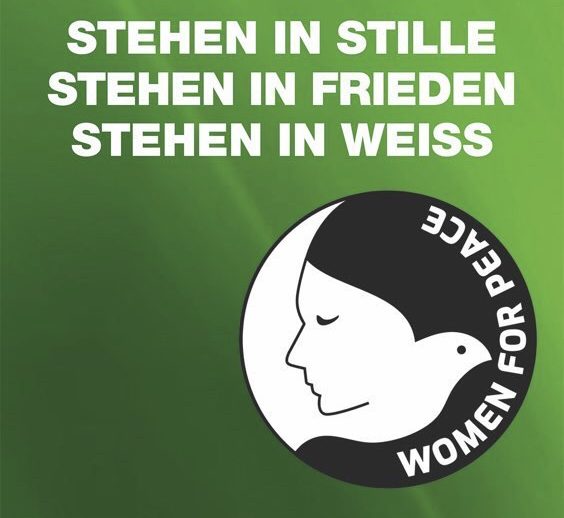 Frauen in weißer Kleidung STEHEN IN STILLE STEHEN IN FRIEDEN STEHEN IN WEISS 13 Uhr Global Stones 14 Uhr vor dem Reichstag |